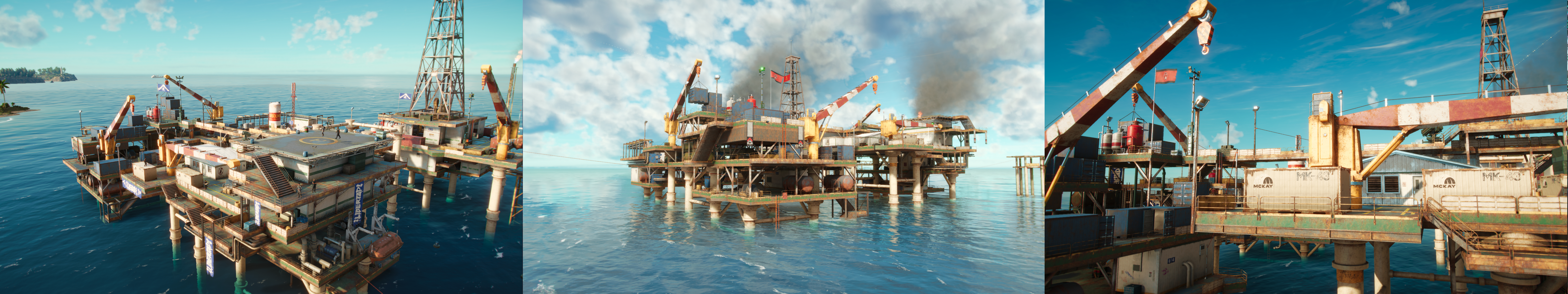 - Themed and colour blocked areas (admin/barracks, shipping, rig, processing area)
